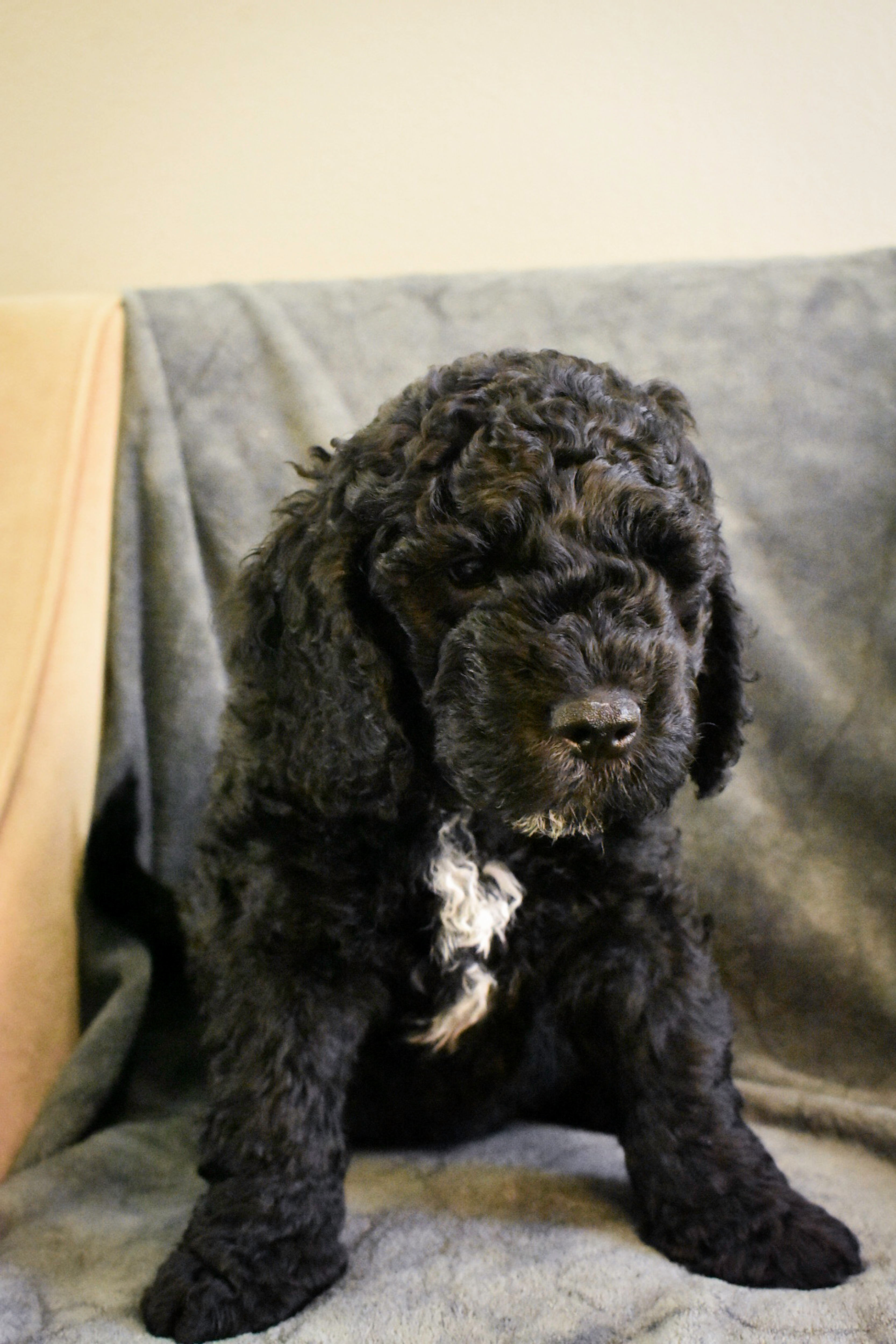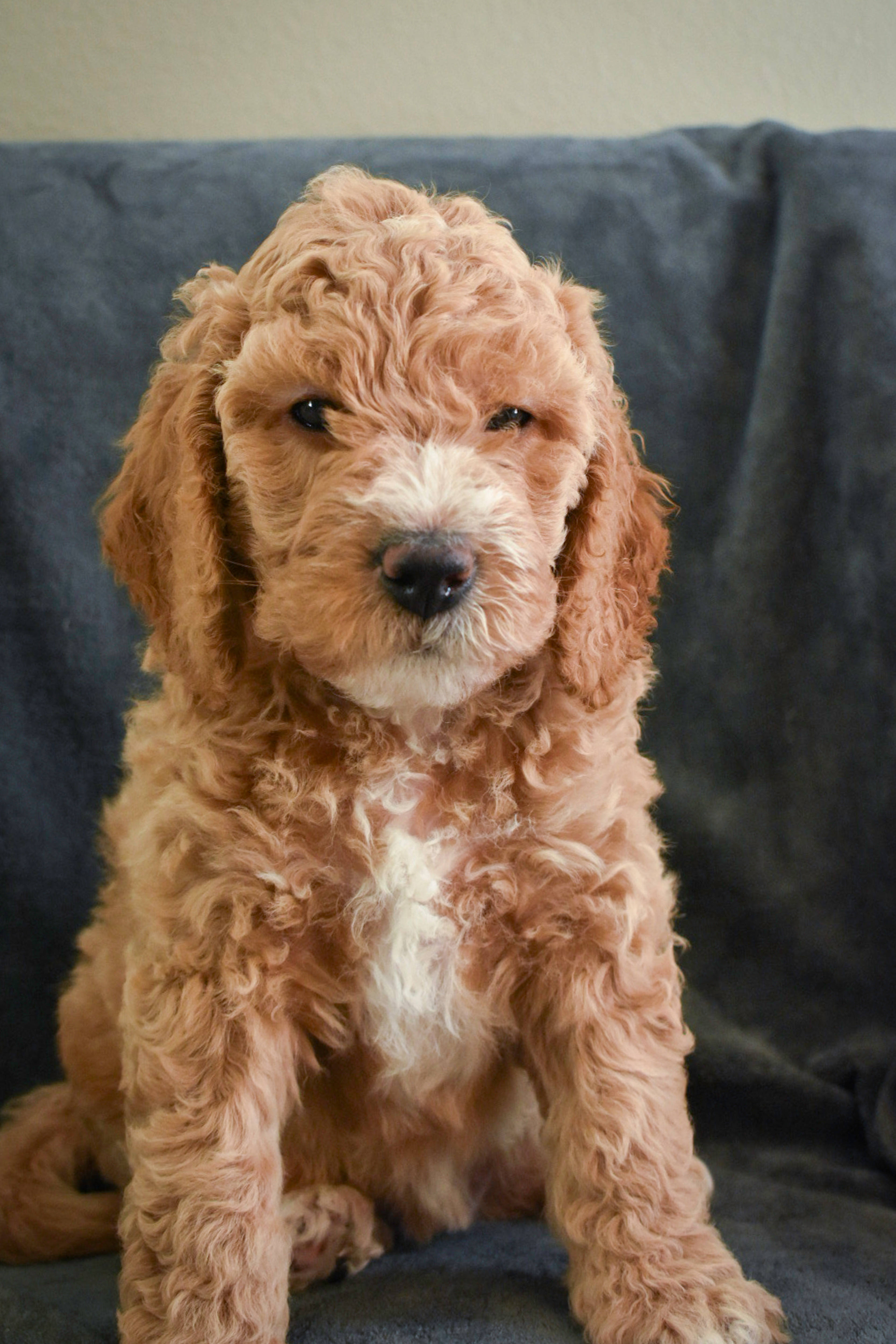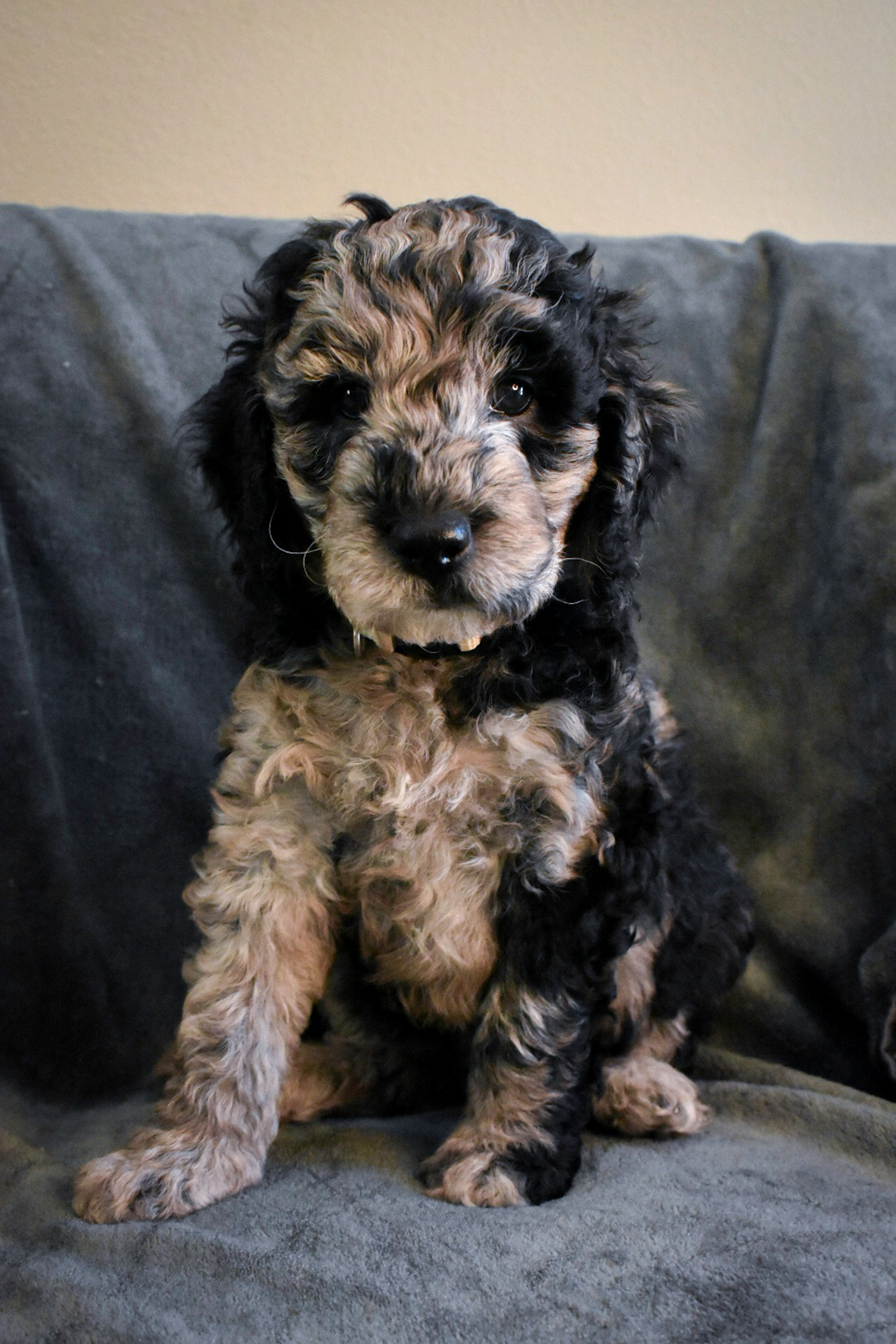 Meet Mera the Blue Merle Goldendoodle (mommy) and Arthur the AKC purebred parti poodle (daddy)! They have previously created three beautiful, healthy litters and welcomed their fourth and final litter in Summer 2023.